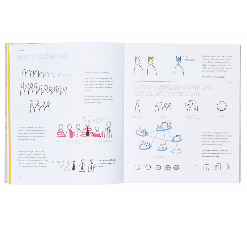 This book provides an informative, easy to follow and fun introduction into the basics of visual thinking and drawing. It is unique by applying these visual thinking and drawing techniques to everyday business settings. By visualizing thought processes within business environments you allow yourself to connect on a deeper level, enable teams them build on each others ideas, foster collaboration and co-creation, accelerate problem solving and advance decision making processes. All of which will result into activating yourself and your colleagues, creating a more energetic workplace, increase the pace innovation, making change happen and ultimately improving customer experience.
